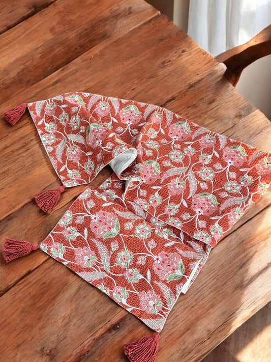Embroidered Handwoven Ottoman – Pastel Cream Bloom