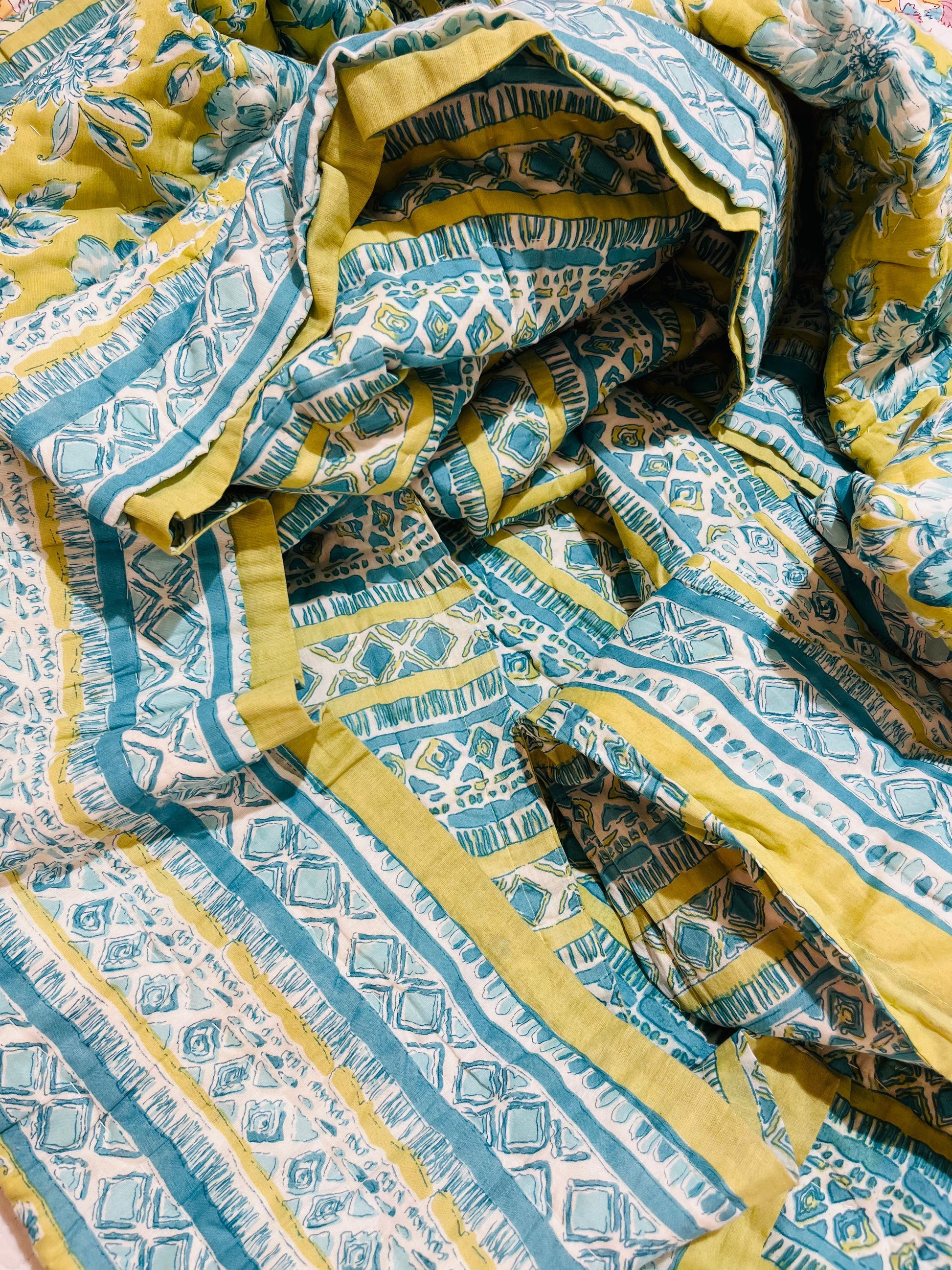 This single bed quilt is designed for everyday comfort with a soft, breathable fabric that feels gentle on the skin. The lightweight yet cozy filling provides just the right warmth for all seasons, making it perfect for daily use. Neatly stitched edges ensure durability, while the elegant print adds a stylish touch to your bedroom décor. Easy to fold and maintain, it fits a standard single bed perfectly and enhances both comfort and appearance.
