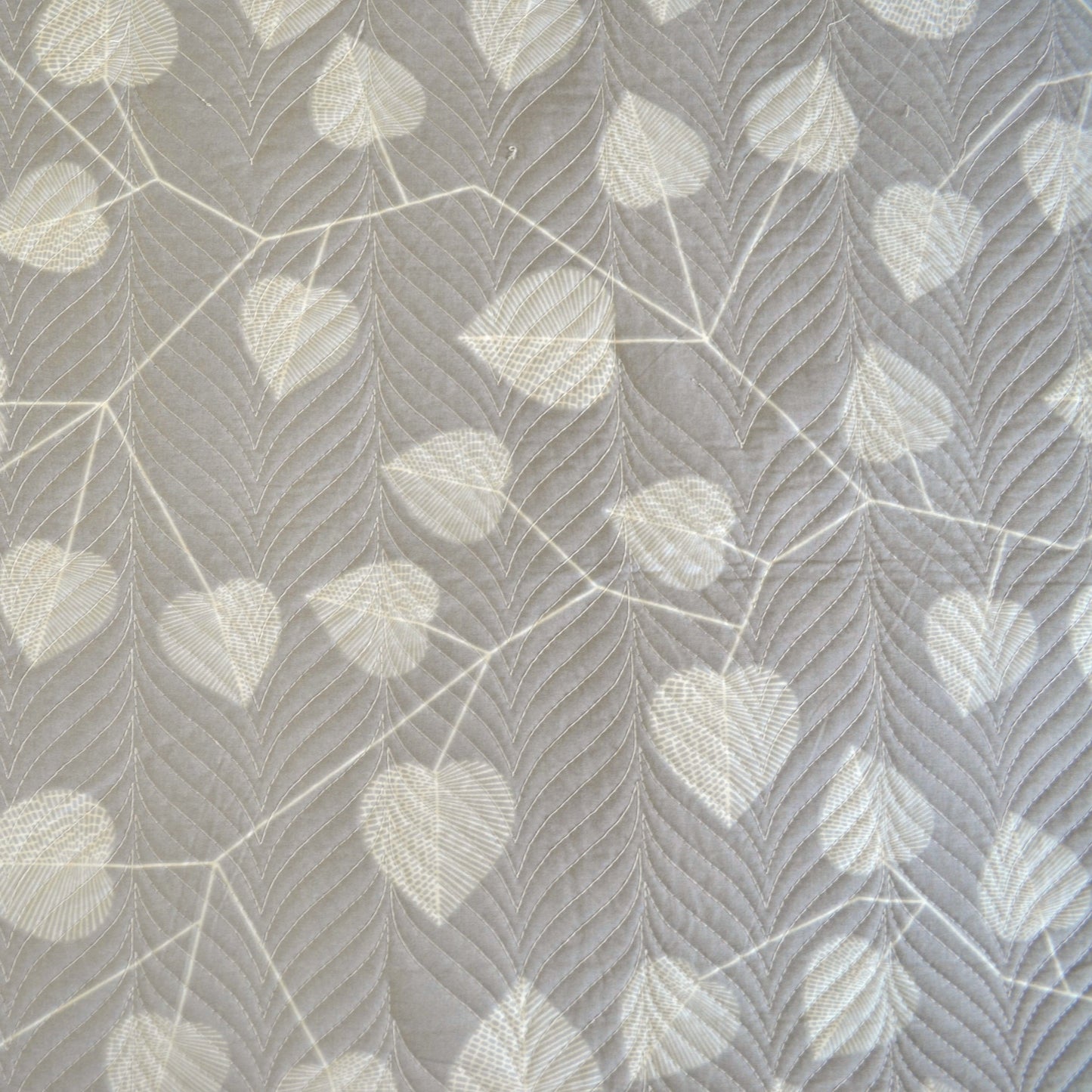 This set includes one bedcover, two pillowcases, and two 12x12 cushions, all featuring a beautifully quilted leaf pattern.