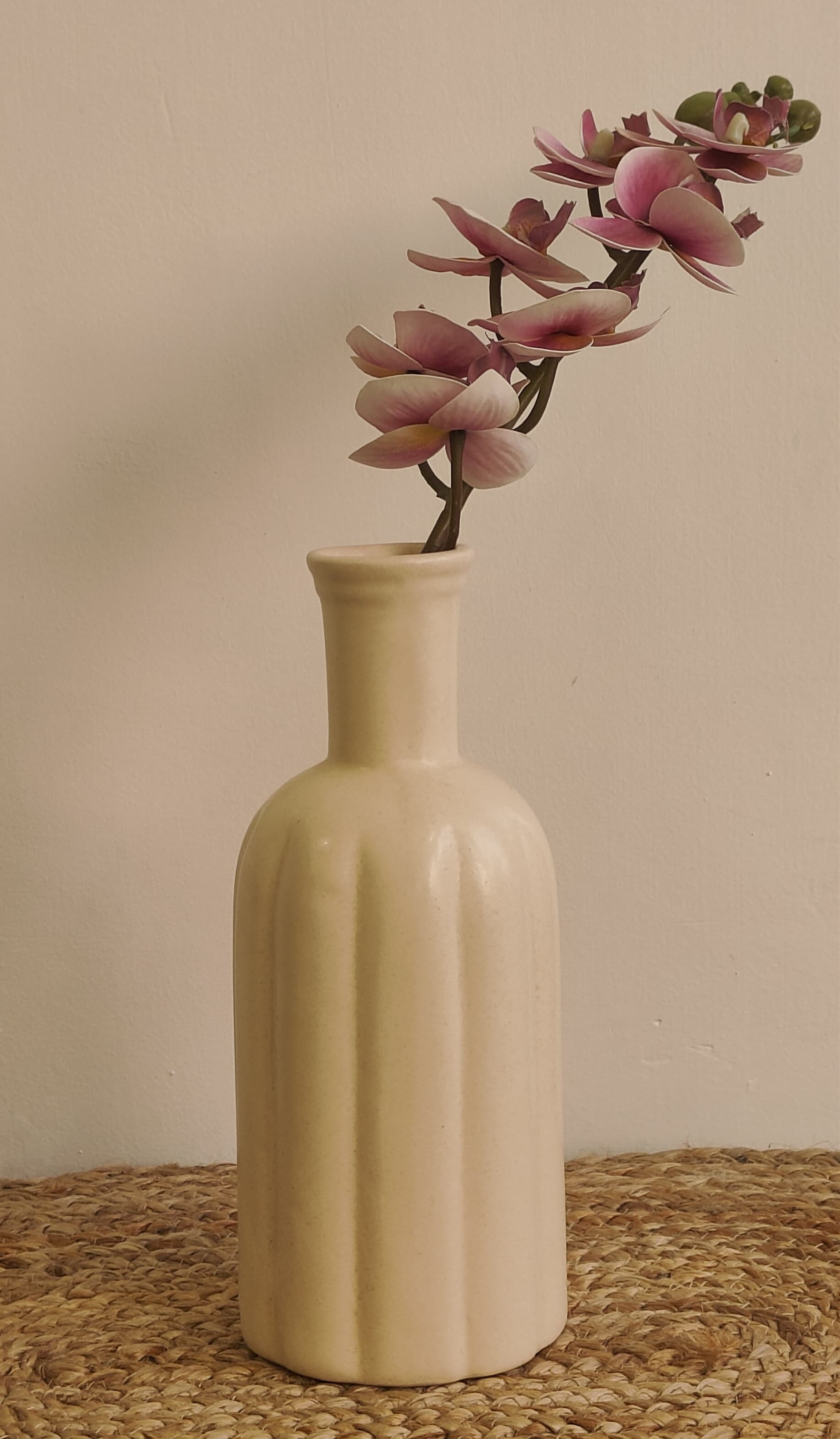 Bring a touch of contemporary sophistication to your home decor with our Ceramic Flask-Shaped Vase. Crafted from high-quality ceramic, this unique vase combines the timeless appeal of traditional pottery with a modern, flask-inspired design. Its sleek, streamlined shape makes it a perfect statement piece for any room in your home, whether displayed alone or with your favorite flowers.