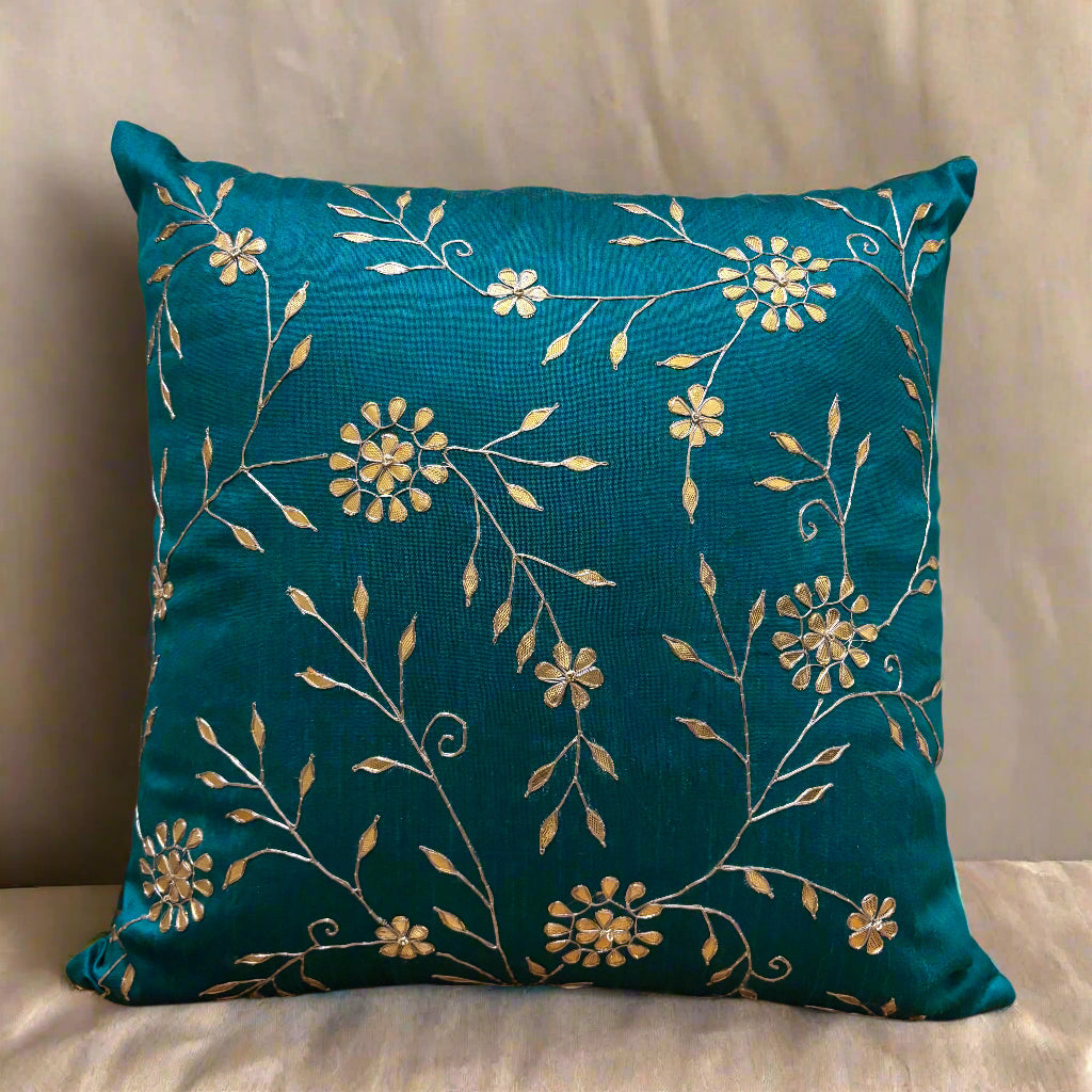 Peacock Blue Jaal Gota Patti Cushion Cover