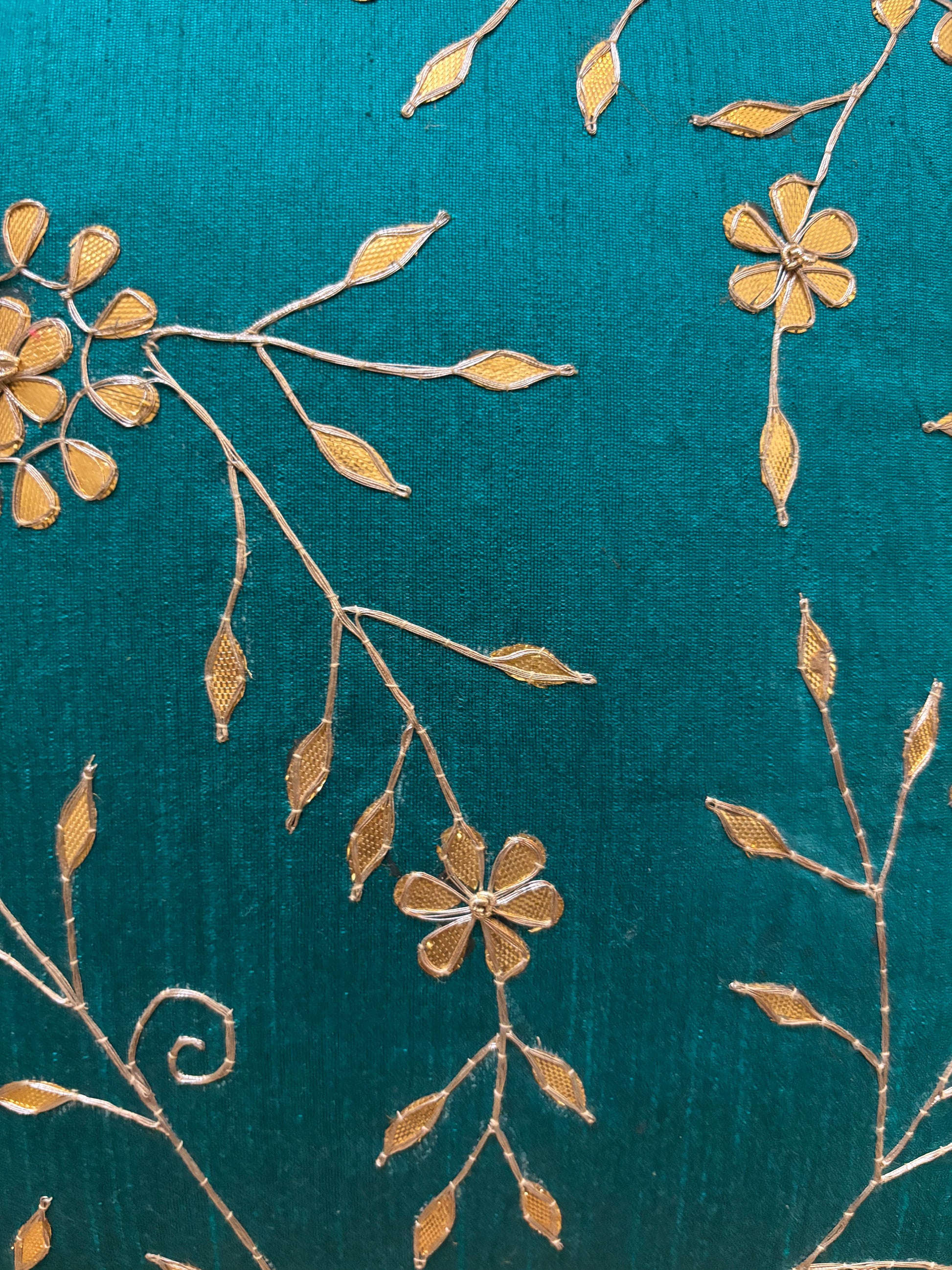 - Design: Handcrafted golden gota patti embroidery