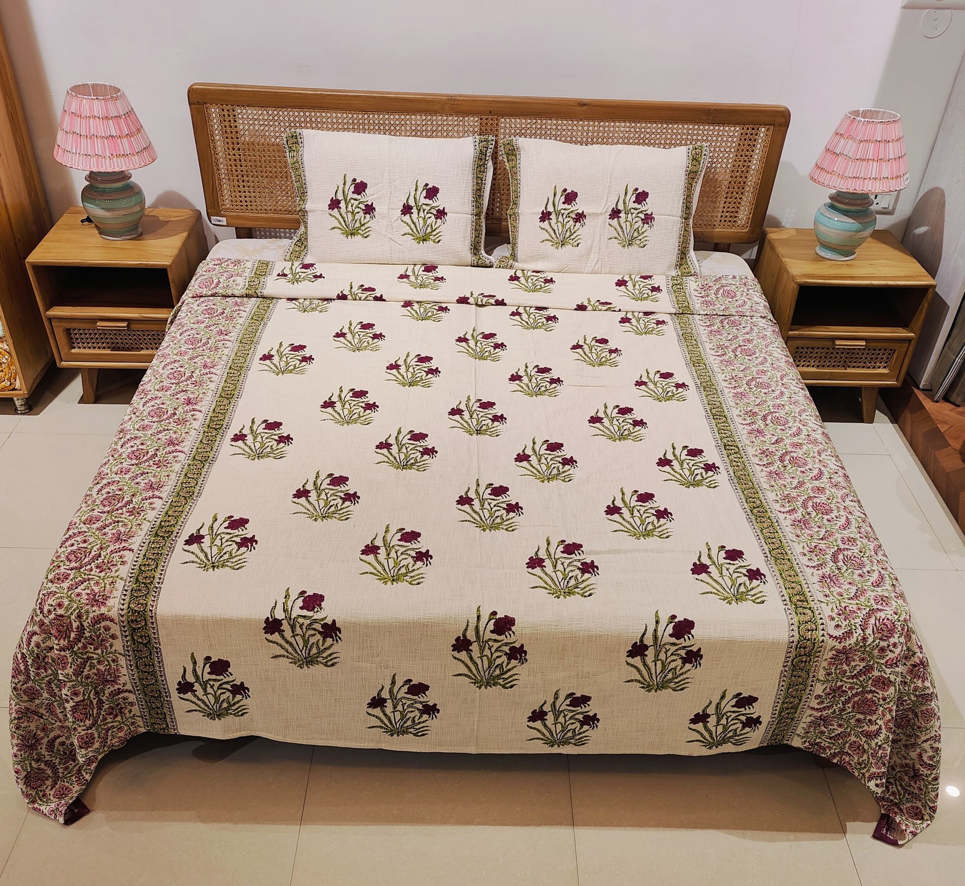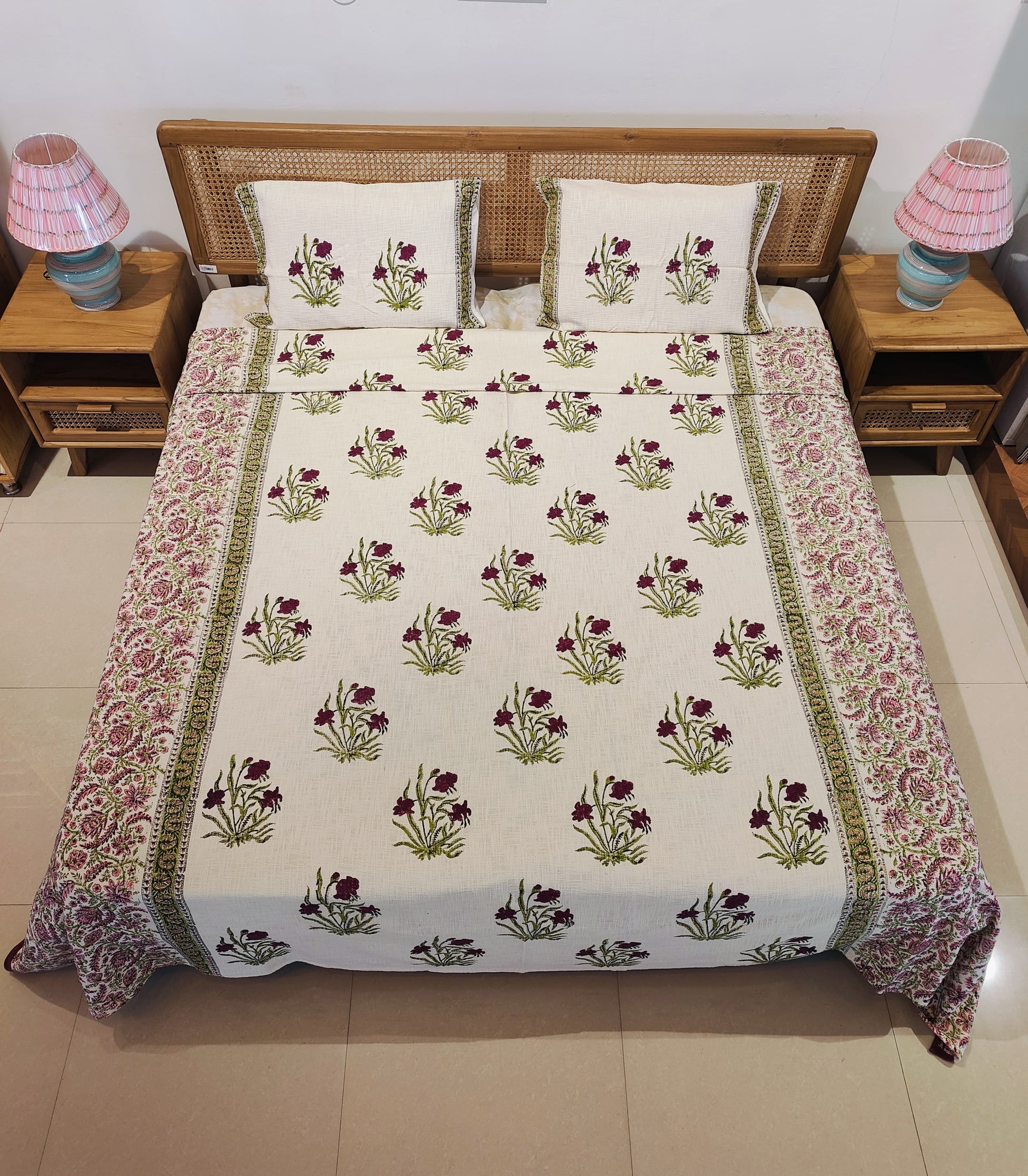 Gulbagh Handblock Cotton Bedcover Set (3-Piece)
