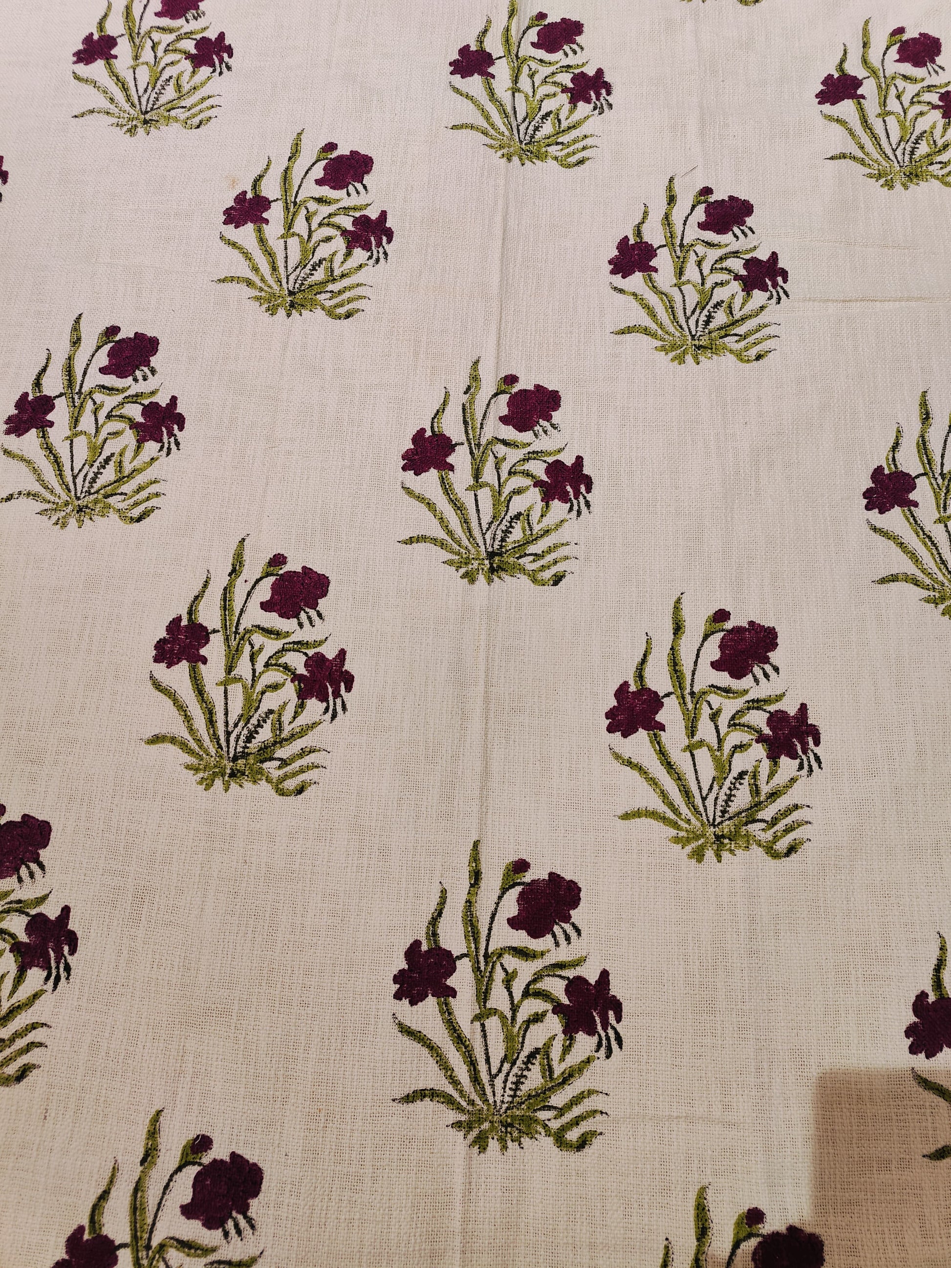Colors: Natural cream base with maroon, olive green, and soft pink