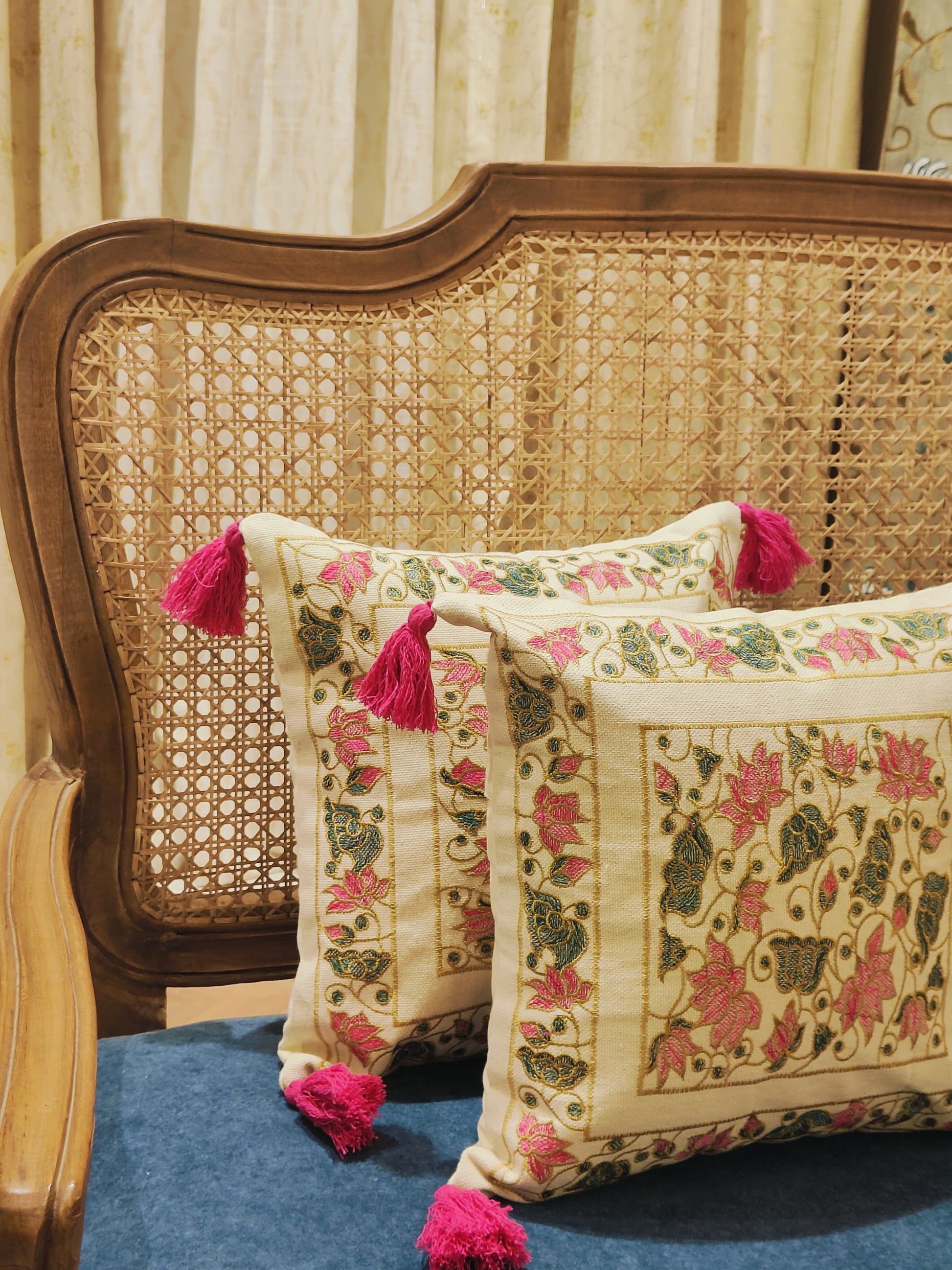 Whether placed on a sofa, bed, or accent chair, this Lotus Pink Cushion Cover adds a graceful touch and blends effortlessly with any color palette. Perfect for everyday use or special occasions!