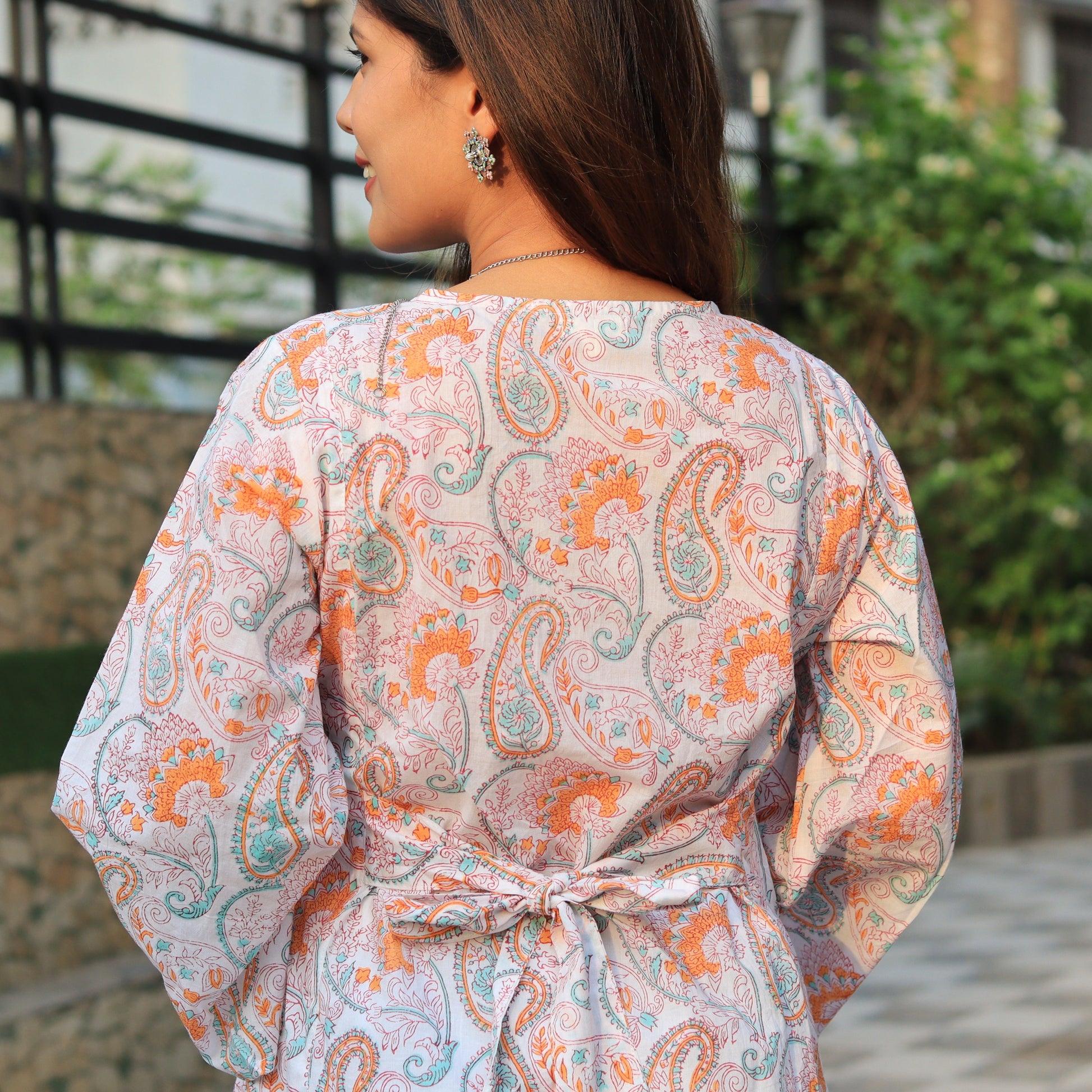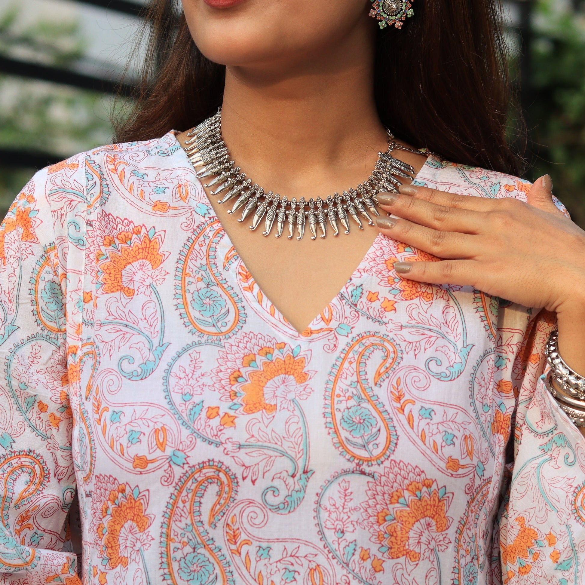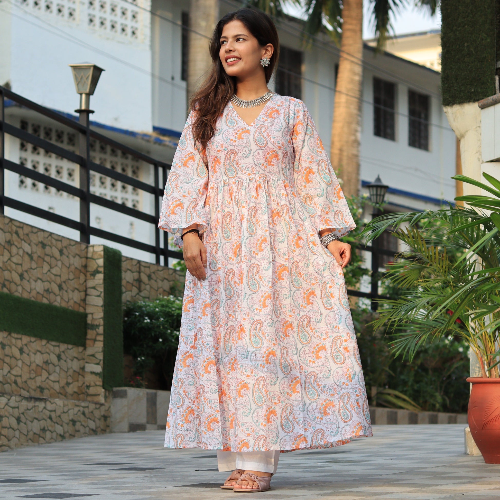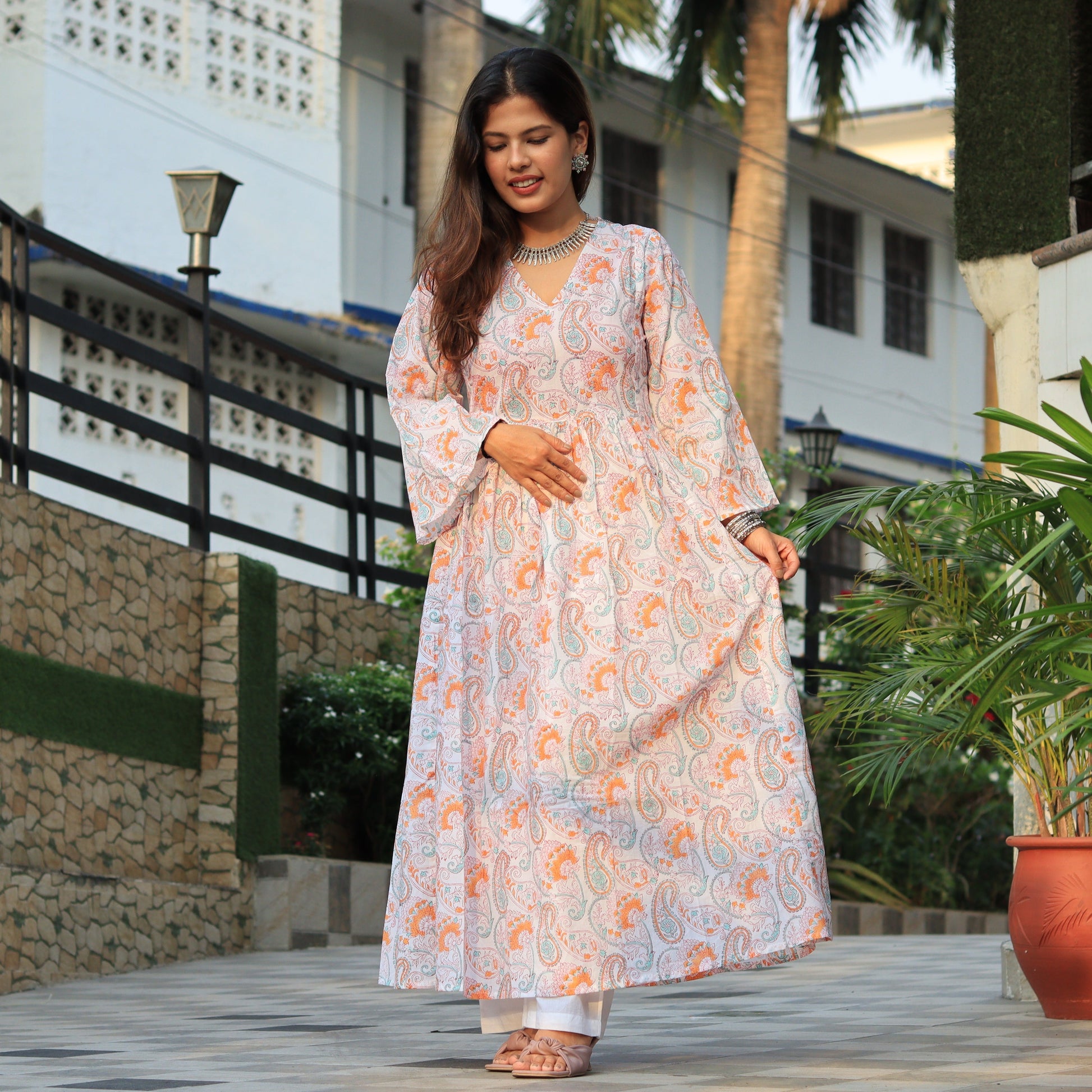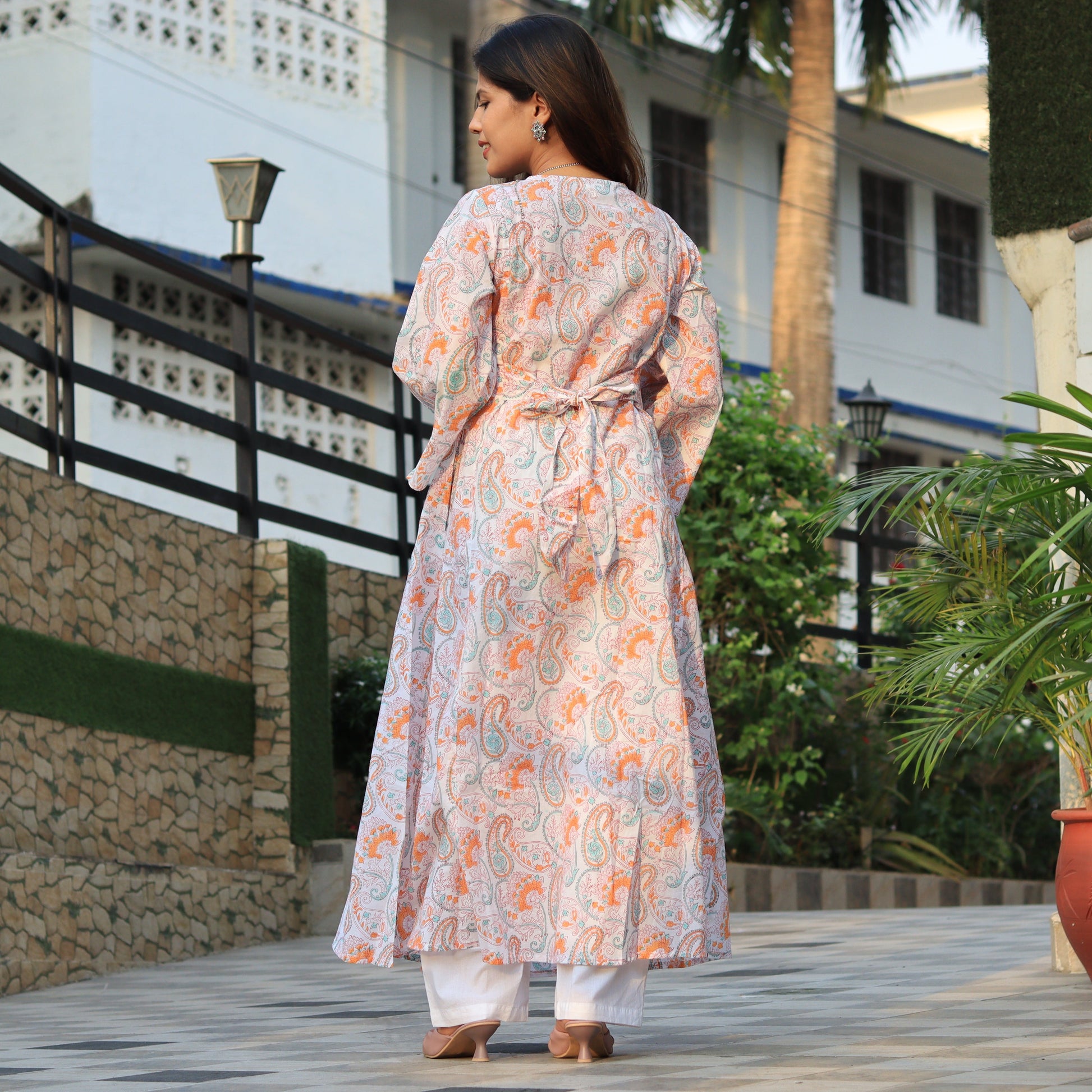 - This Kurta is adorned with intricate paisley prints that exude timeless charm