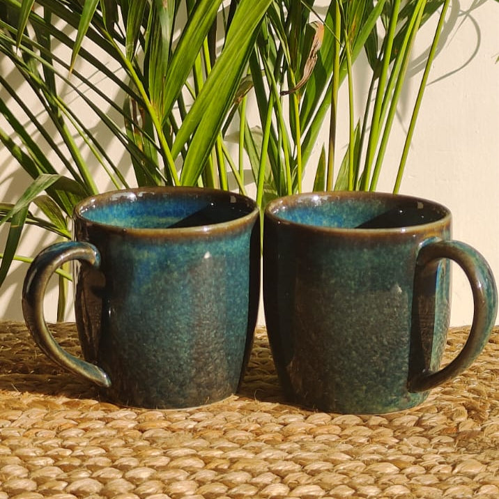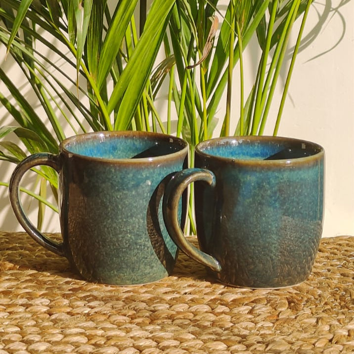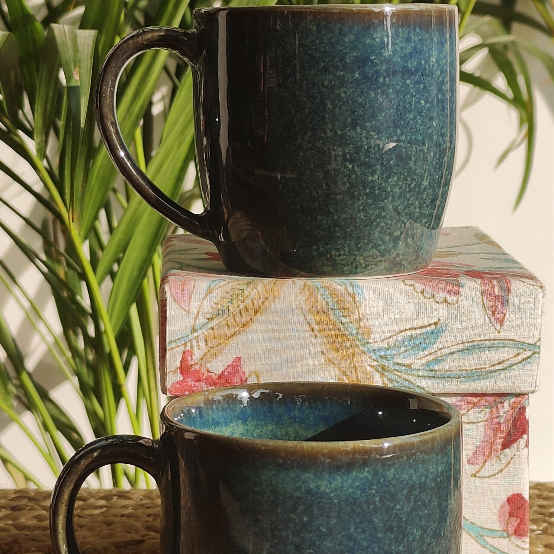Rozana Porcelain Tea Mugs (Teal) Set of 2