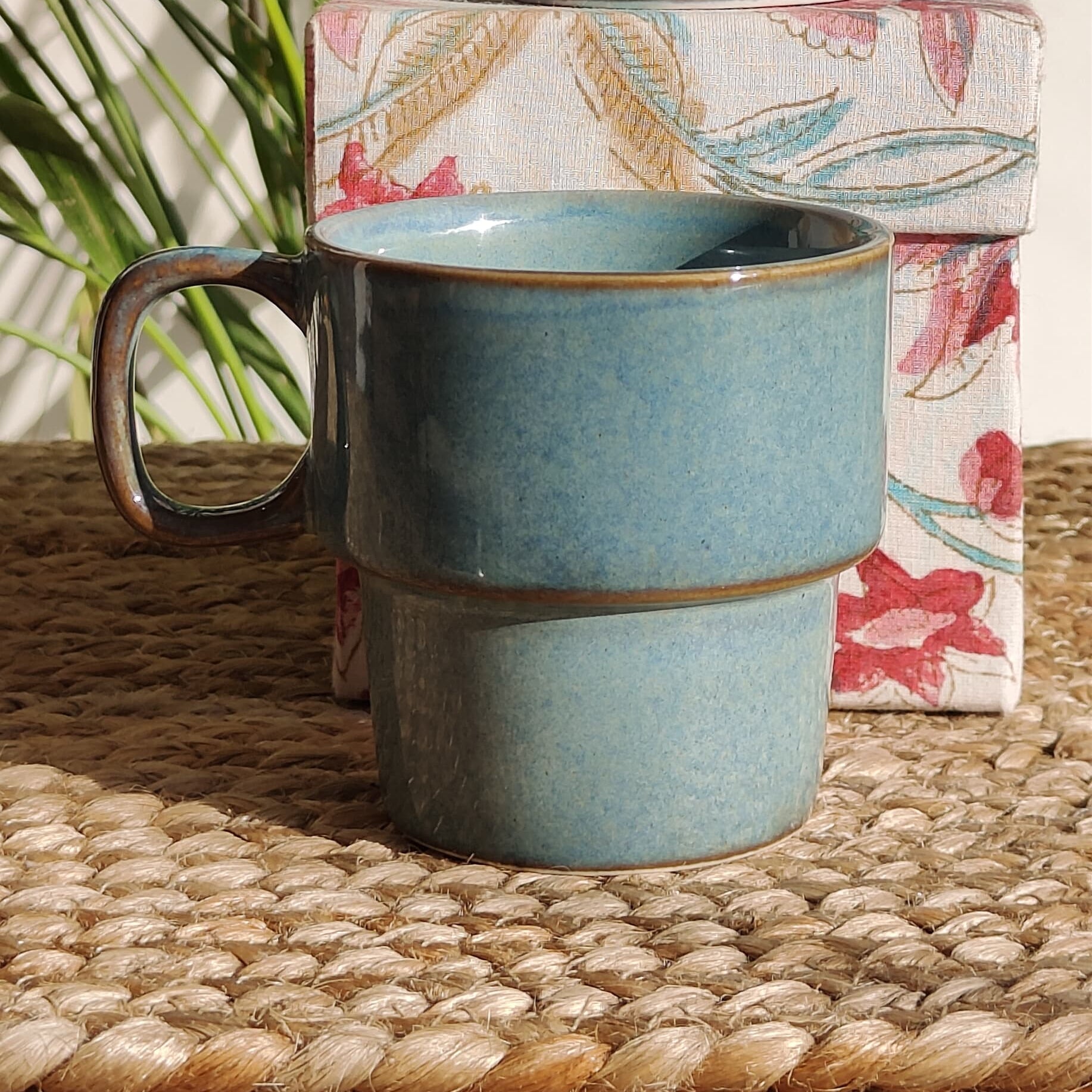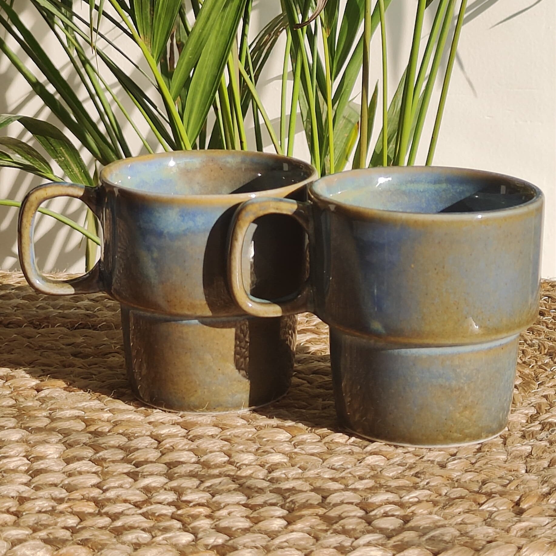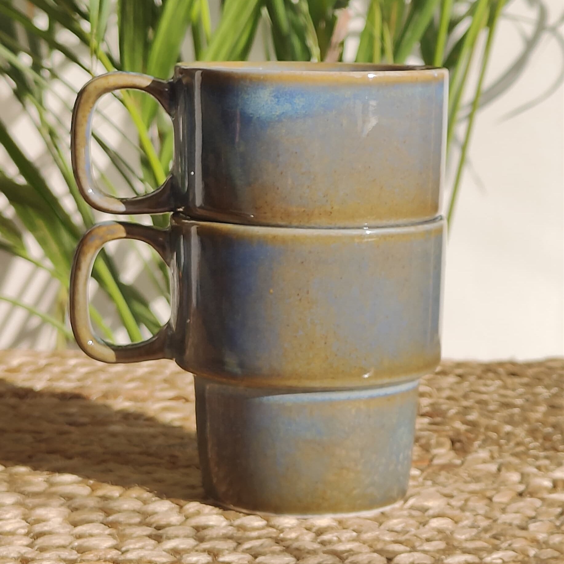 Stackable Porcelain Mugs (Teal & Brown)